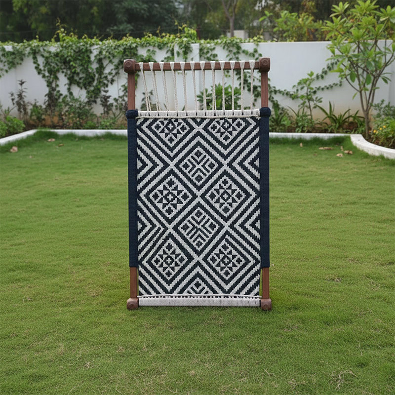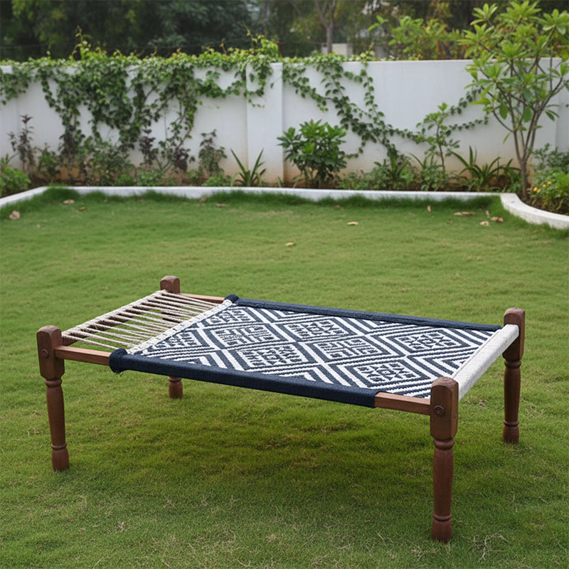 Upgrade comfort with the Wooden Woven Rope Charpai by Woodensure. Expertly handcrafted from 100% premium Acacia wood and woven cotton rope in soothing blue and white, this charpai combines durability, comfort, and rustic elegance. Ideal for bedrooms, living rooms, balconies, gardens, or boutique restaurants, it serves as both a functional seating/bedding solution and a decorative piece. Its solid construction ensures long-lasting use, while its classic design brings a touch of Indian heritage into modern homes.