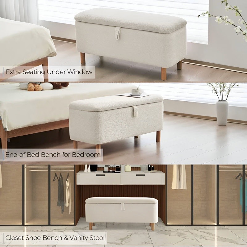 This storage ottoman bench is crafted with a sturdy wooden frame and premium upholstery, ensuring long-lasting durability, stability, and resistance to daily wear and tear.