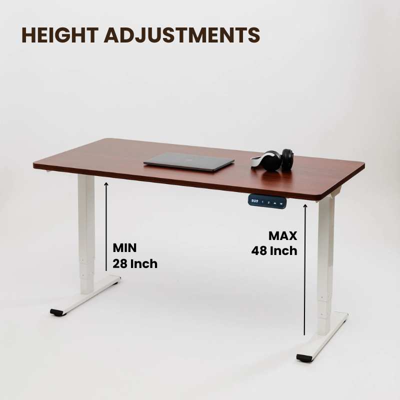 It allows height regulation with custom colors and enhances workspace appearance and organization. Get your one-of-a-kind electric height-adjustable standing table.